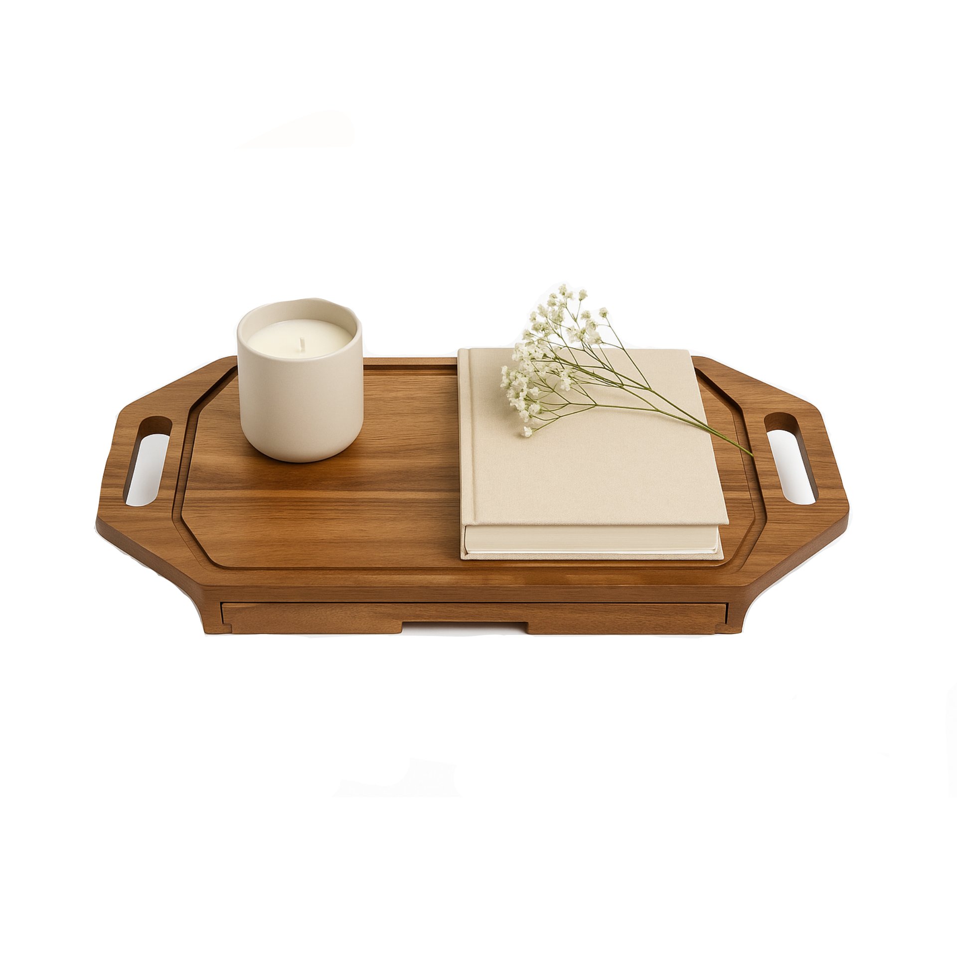 Premium acacia look, sturdy, and easy to clean. The hidden drawer for chopsticks/sauce cups is a smart touch.